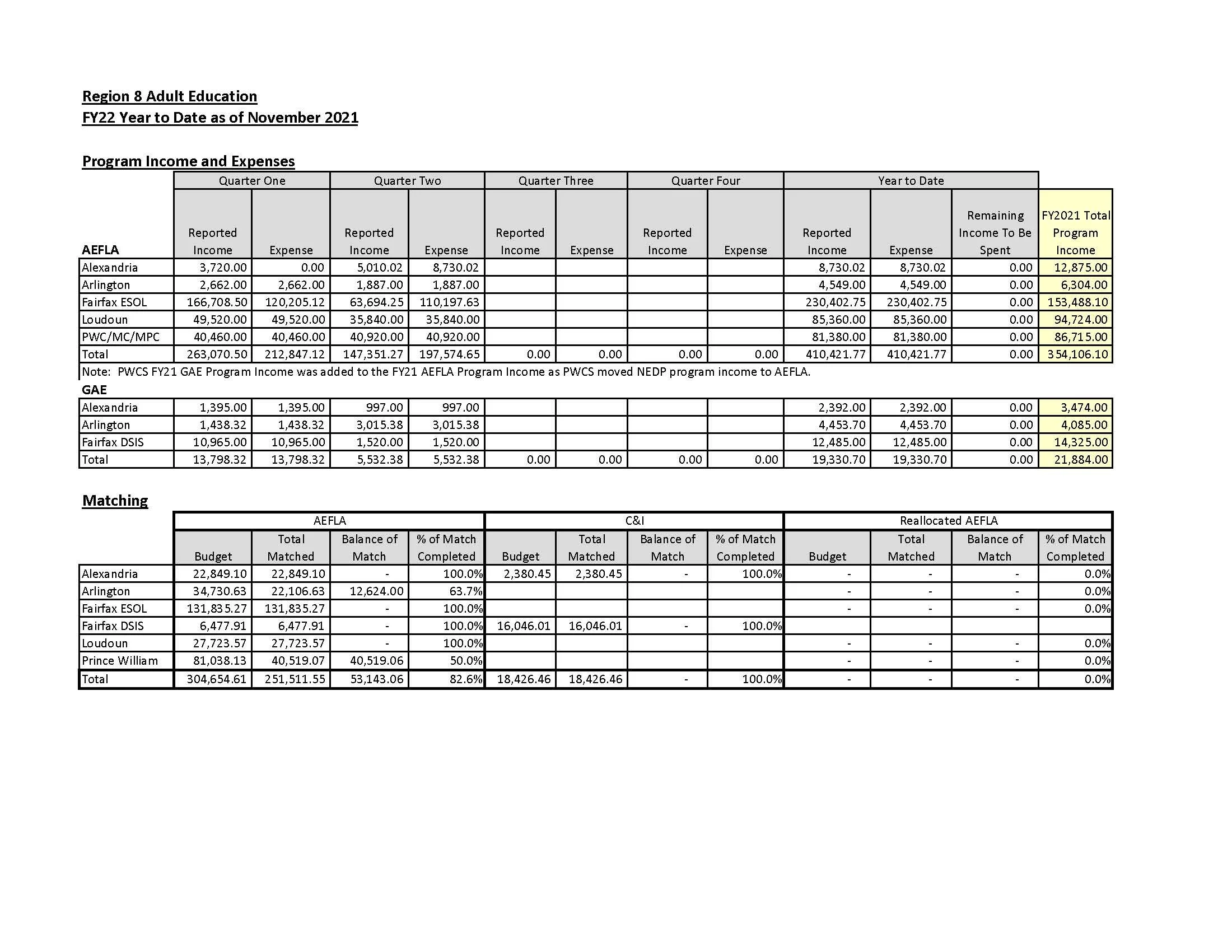 Keep spending down RACE and GAE. As you know these grants end earlier than AEFLA.